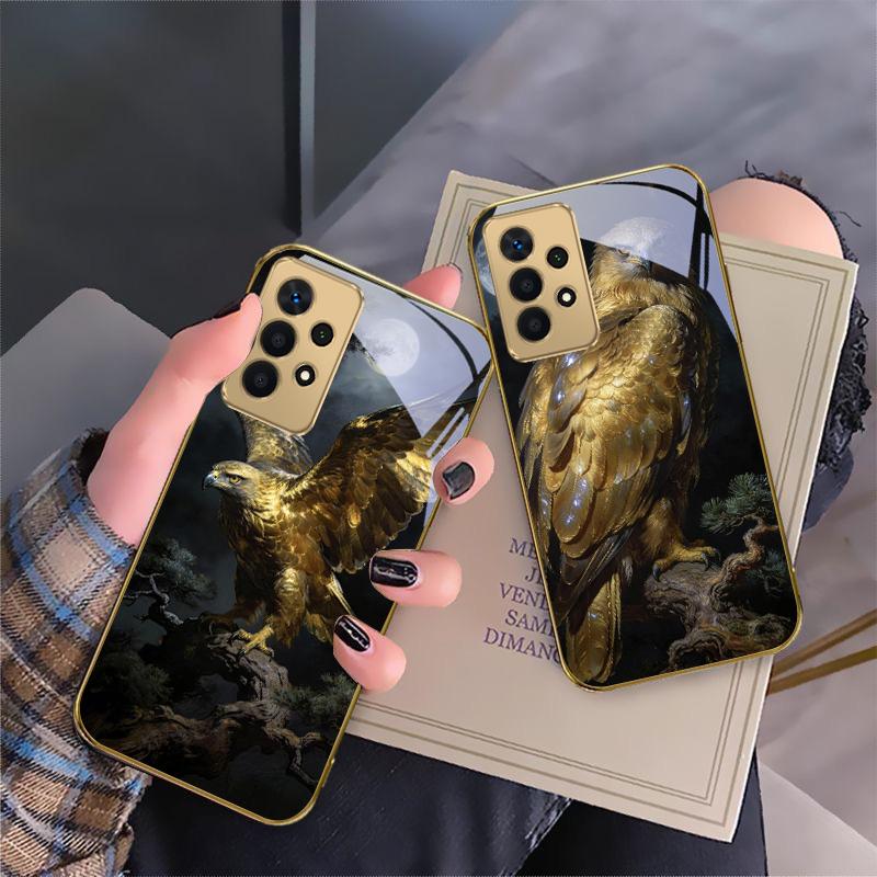 Golden Eagle with Wings For Samsung A 01 52S A04 A05S A10 A12 A13 22 23 24 36 42 M02 Note 10 20Ultra 8 9 Golden glass phone case