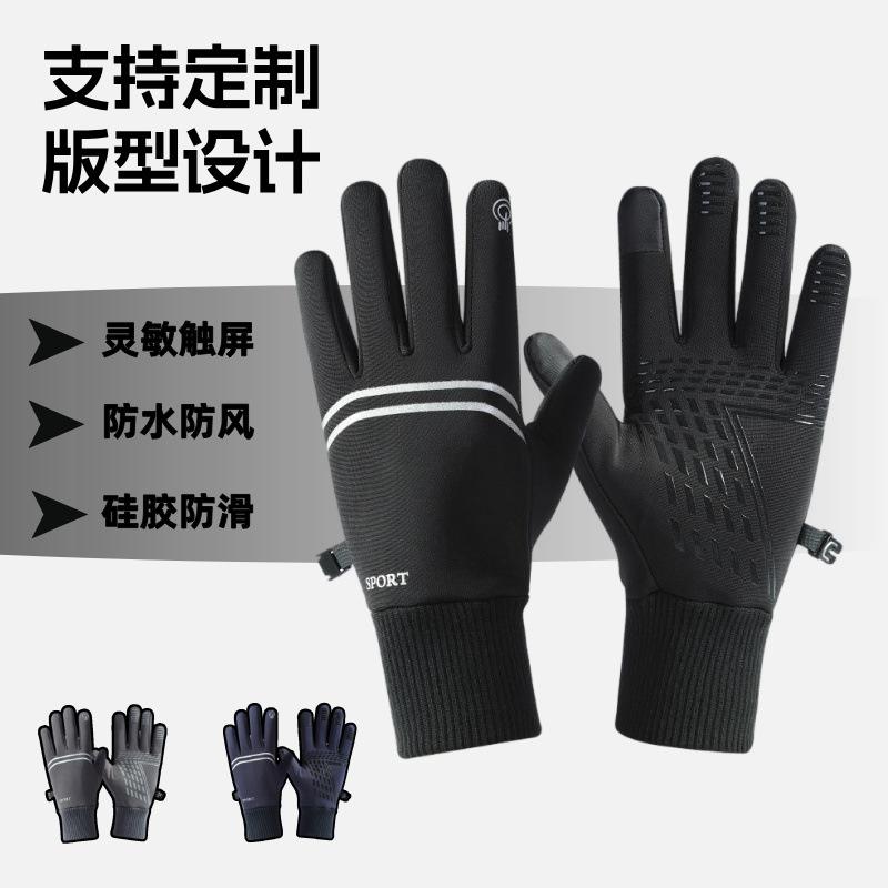 Cross Border Cycling Gloves Men Outdoor Velvet Touch Screen Sports Anti Slip Windproof Waterproof Wear-resistant Warm