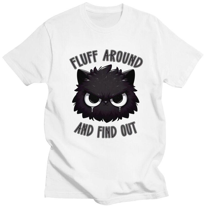 Fluff Around And Find Out Black Cat Meme T Shirt Men Women Short Sleeve Tshirts Graphic Tee Pure Cotton Loose Oversized Clothes