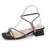 Elegant Square Toe Medium Heel Woman's Sandals Women Summer 2026 Luxury Rhinestore Strap Sandals Plus Size