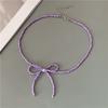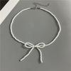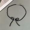 Korean Fashion Knotbow Choker Necklace for Girl Trendy Romantic Handmade Rice Beads Short Neck Jewelry Gift for Friend