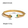 Uworld Simple Classic Gold Color Plated Stainless Steel Natural Stone Blue Turquoise Ribbed Bracelet Stackable Peacock Stone