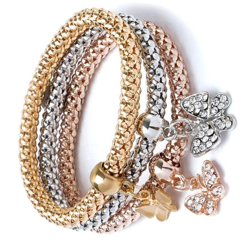 3-in-1 elastic popcorn corn bracelet for women, 3-color gold-plated butterfly crown, boat anchor jewelry, Valentine's Day gift