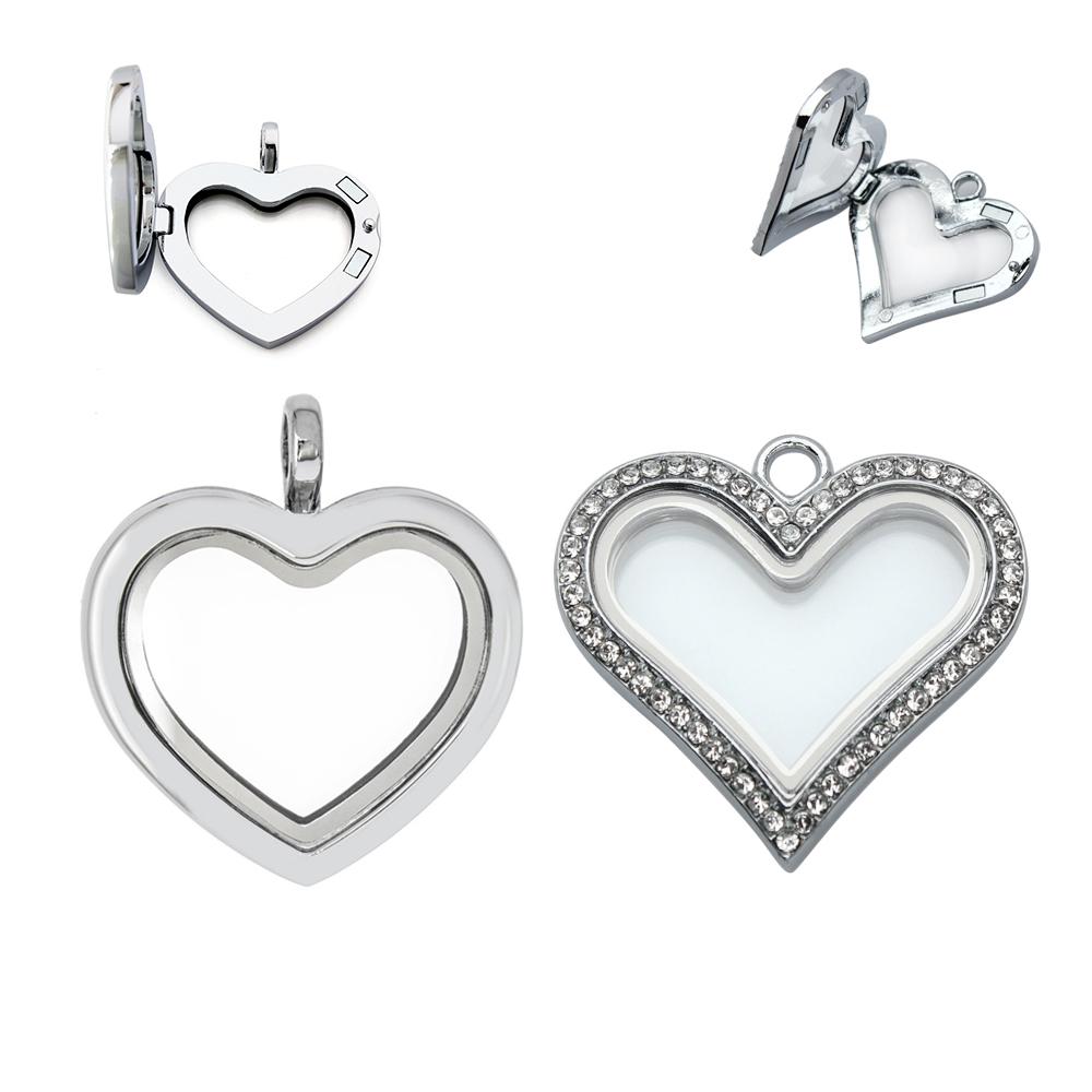 10pcs Heart Glass Living Memory Locket Magnetic Floating Charms Locket Medallion Necklace Pendant For DIY Women Jewelry Making