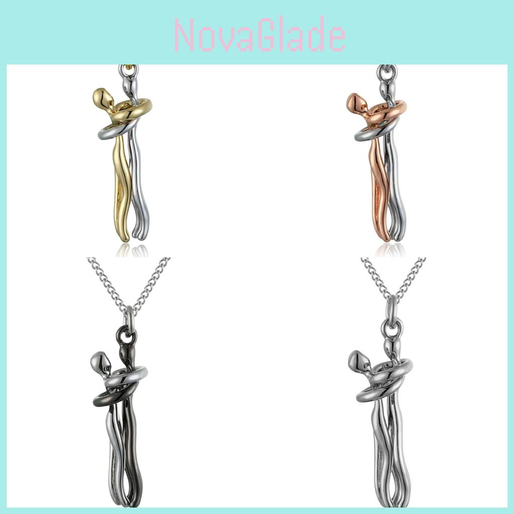 Stylish Couple Embrace Pendant Necklace For Lovers With Cartoon Charm In Black