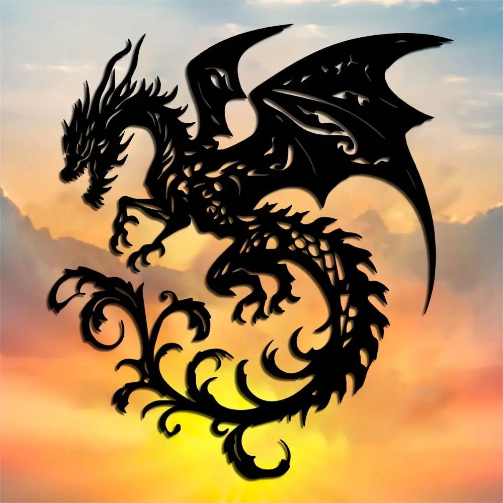 Handmade Metal Dragon Wall Art, 15.7x14in Black Iron Sculpture for Home Yard Balcony Decor, Unique Housewarming Gift