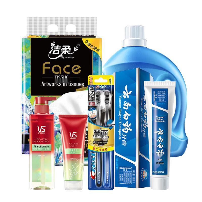 This comprehensive Yunnan Baiyao Personal Care & Home Essentials Set provides everything you need for daily hygiene and basic household needs. Featuring a thoughtful selection including toothpaste, toothbrush, shampoo, conditioner, laundry detergent, and tissues, it's perfect for travel or stocking your home with trusted essentials. All products are designed for basic cleaning and everyday use, ensuring freshness and convenience.
