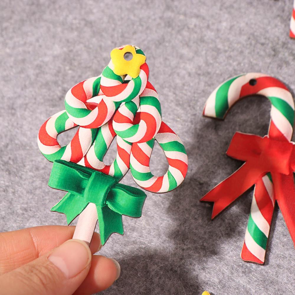 16/32Pcs Creative Christmas Lollipop Ornaments Handmade Colorful Candy Cane Wooden Pendant Decorative DIY Craft