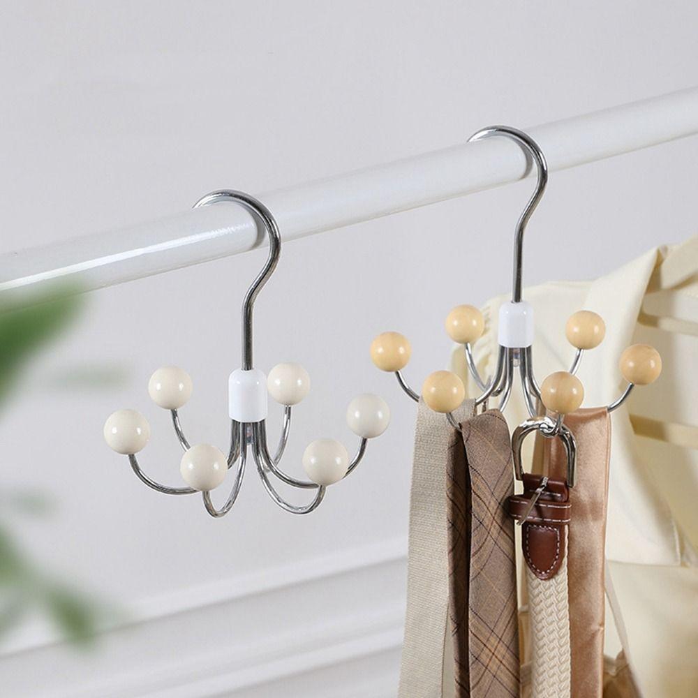 Creative Iron Wooden Ball Swivel Hook Rotatable Hanging Six-claw Hook Black Clothes Hangers Home