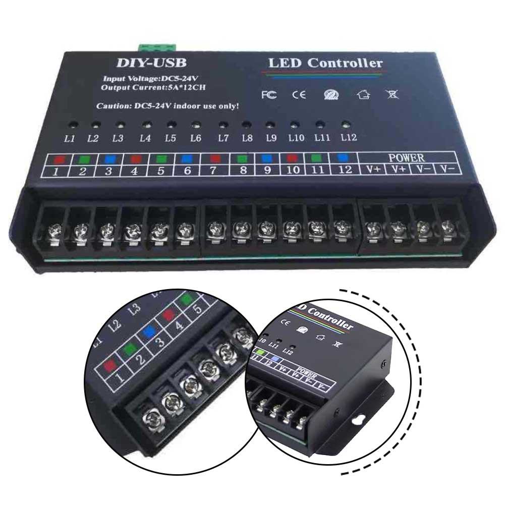 1pc 60A 12-Channel LED Light Programmable Controller Dimmer For Control RGB Monochrome Lights Easy To Install