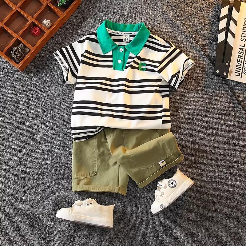 Trendy Summer Boys Polo Shirt Set For Kids Stylish Short Sleeve Outfit For Boys