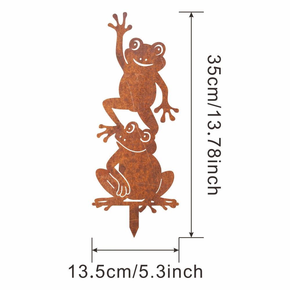 Vintage Rusty Iron Frog Garden Stake Stacked Metal Yard Art Country Outdoor Decor