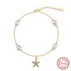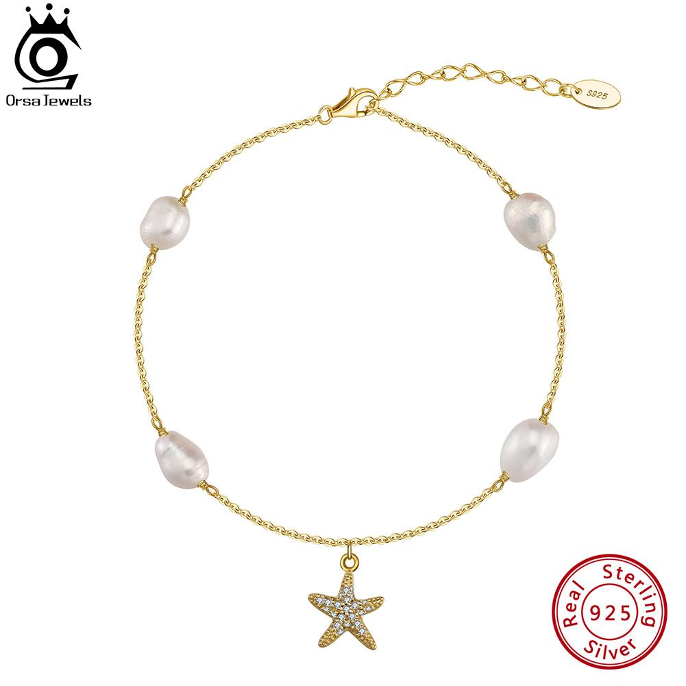 ORSA JEWELS Natural Freshwater Pearl and Starfish 925 Silver Chain Ankelt for Women Summer Holiday Anklets Jewelry SA74