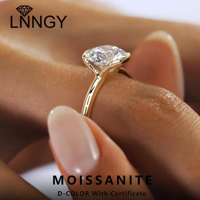 Lnngy 6.5MM 1CT Half Bezel Moissanite Ring for Women S925 Silver Solitaire Engagement Ring Certified Jewelry Gift