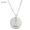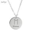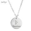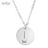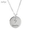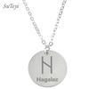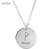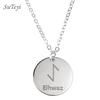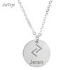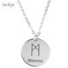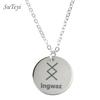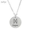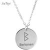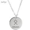 Round 25 Rune Letter Pendant Necklace Silver Color Stainless Steel Disc Viking Necklaces For Women Men