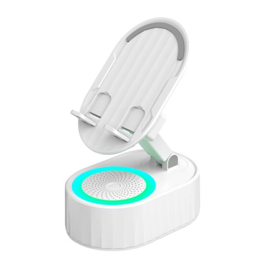 3,5 ila 12,9 inç arasındaki cep telefonlarını ve tabletleri desteklemek üzere tasarlanan bu stant, kablosuz algılama, Bluetooth uyumlu hoparlörler ve ortam aydınlatmasını bir araya getirir.. 5W'lık hoparlörler, herhangi bir ses seviyesinde yüksek çözünürlüklü stereo ses sunarak sürükleyici bir ses deneyimi sağlar.