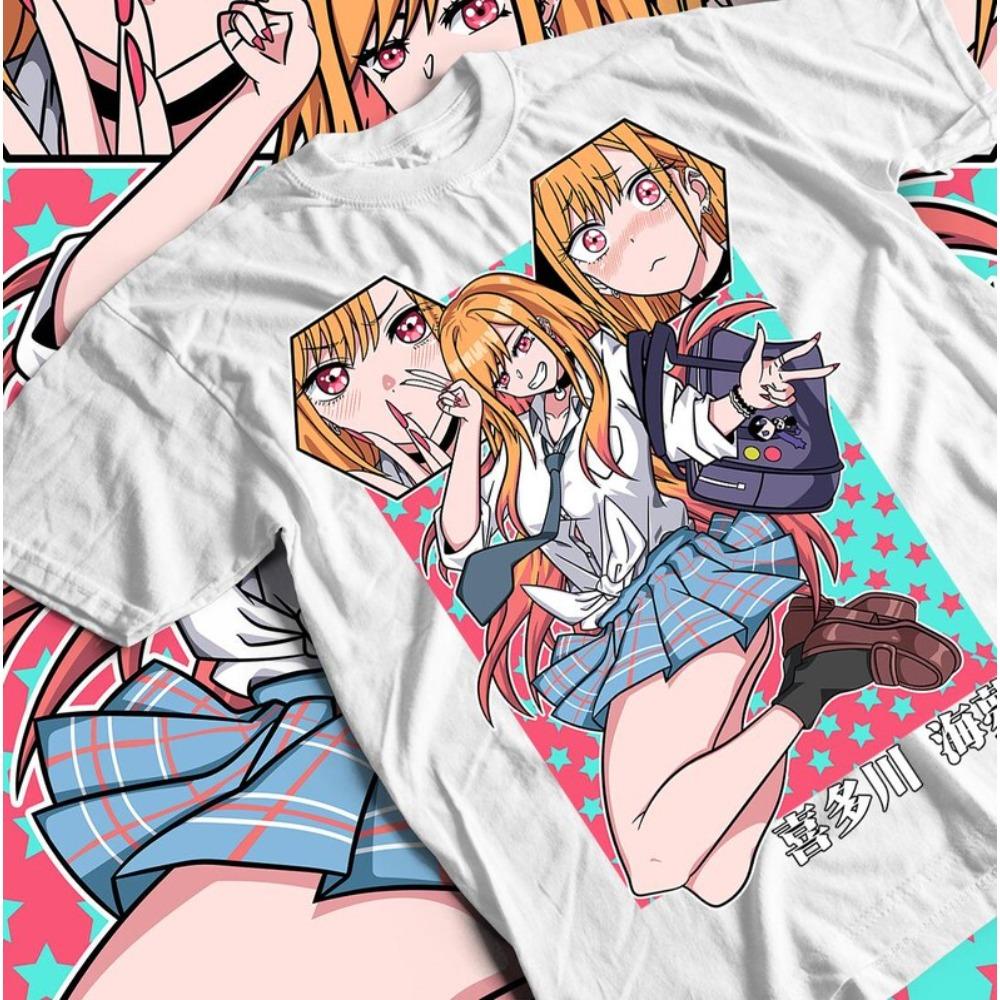 My Dress-Up Darling Marin Kitagawa Multi-Expression Collage Vintage Anime T-Shirt, Unisex Rom-Com Anime Fan Streetwear Tee, 100% Cotton Casual Short