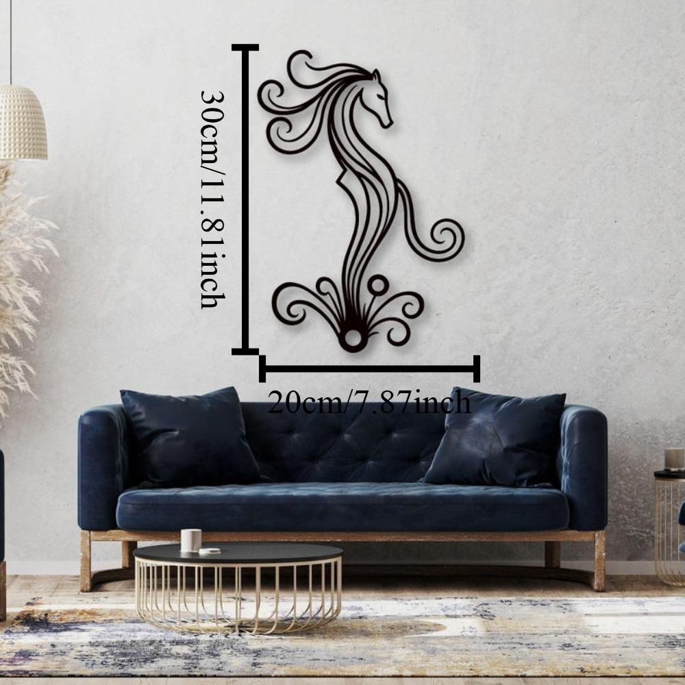 Wrought Iron Horse Head Wall Decor, Modern Animal Metal Art, Equestrian Home Decoration for Living Room, Black Abstract Sculpture