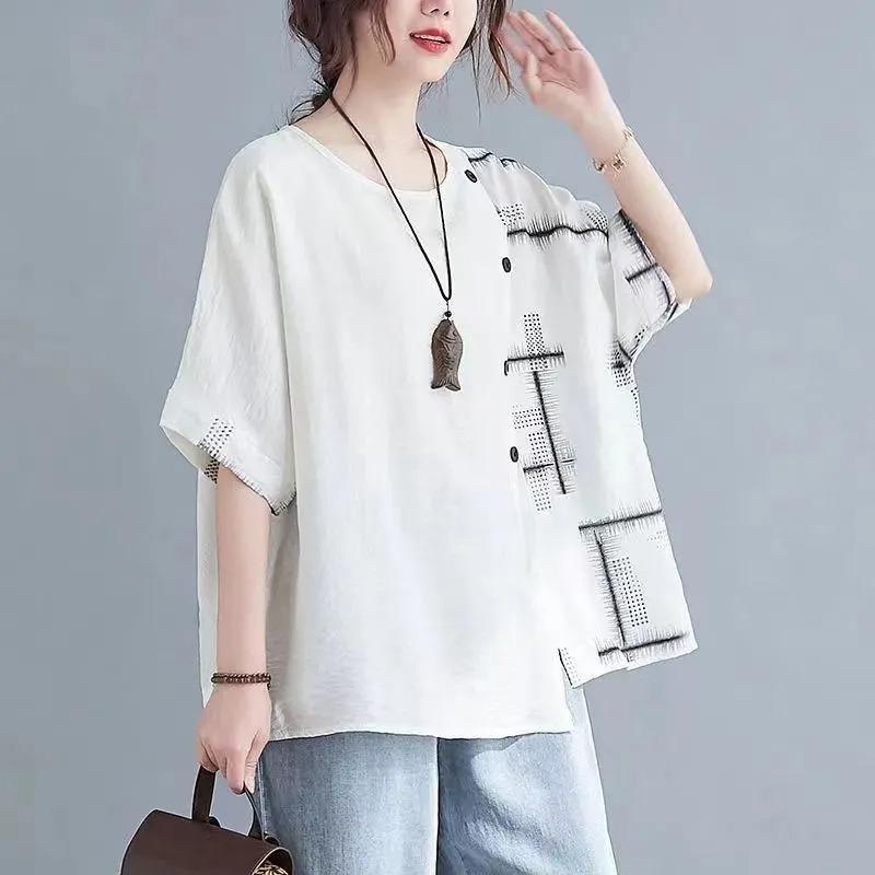 Summer New Cotton and Linen Women's Tops Loose Short-sleeved T-shirts for Women