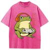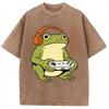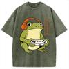 Japanese Gamer Frog Washed T-Shirt Fashion Summer Cotton Harajuku Sports Tees Y2K Vintage Holiday Tunics Unisex