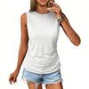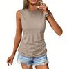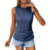 Fashion features: Summer women's tops are pleated to cover the belly, with a round neckline, sleeveless, solid color design;
