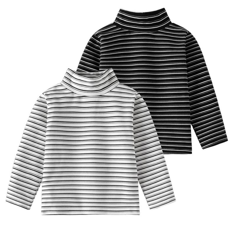 Yüksek Yakalı Uzun Kollu Çizgili Çocuk Tişörtü