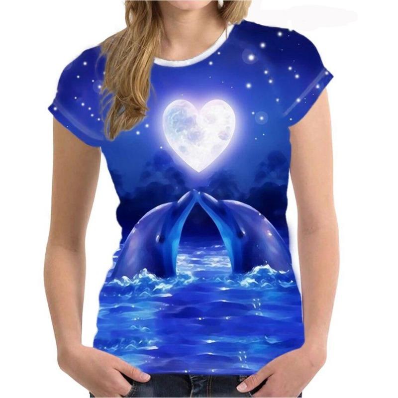 Women's T Shirt Dolphin Animal 3D Print Tee Summer Fashion Casual O-Neck Short Sleeve T-Shirts Y2k Tops Harajuku Female Clothing