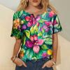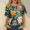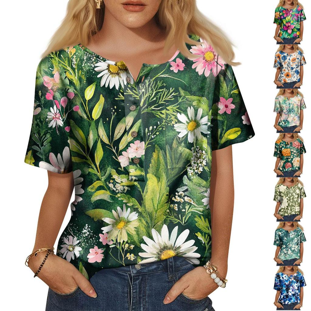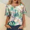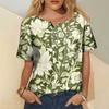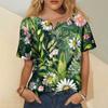 Women's Fashion Casual Short Sleeve Print Round Neck Pullover Top Blouse