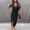 EastRogue Women's Fashion Fall Winter Solid Color Print Long Sleeve POLO Neck Casual Dresses