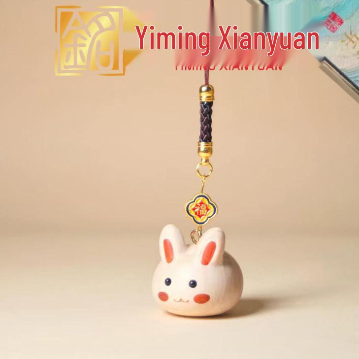 Yi Ming Red Sandalwood & White Maple DIY Rabbit Pendant - Zodiac Rabbit Phone Charm