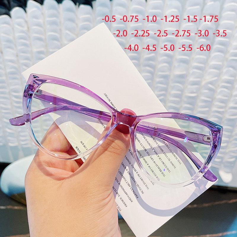 Retra Cat Eye Frame Clear Lens Eyeglasses Simple Myopia Nerd Spectacles Degree -0.5 -1.0 -2.0 -3.0 -4.0 to -6.0
