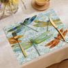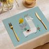 Animal Print Linen Placemat Rabbit Parrot Dragonfly Pattern Desktop Decorations Tableware Non-slip Heat Insulation Mat
