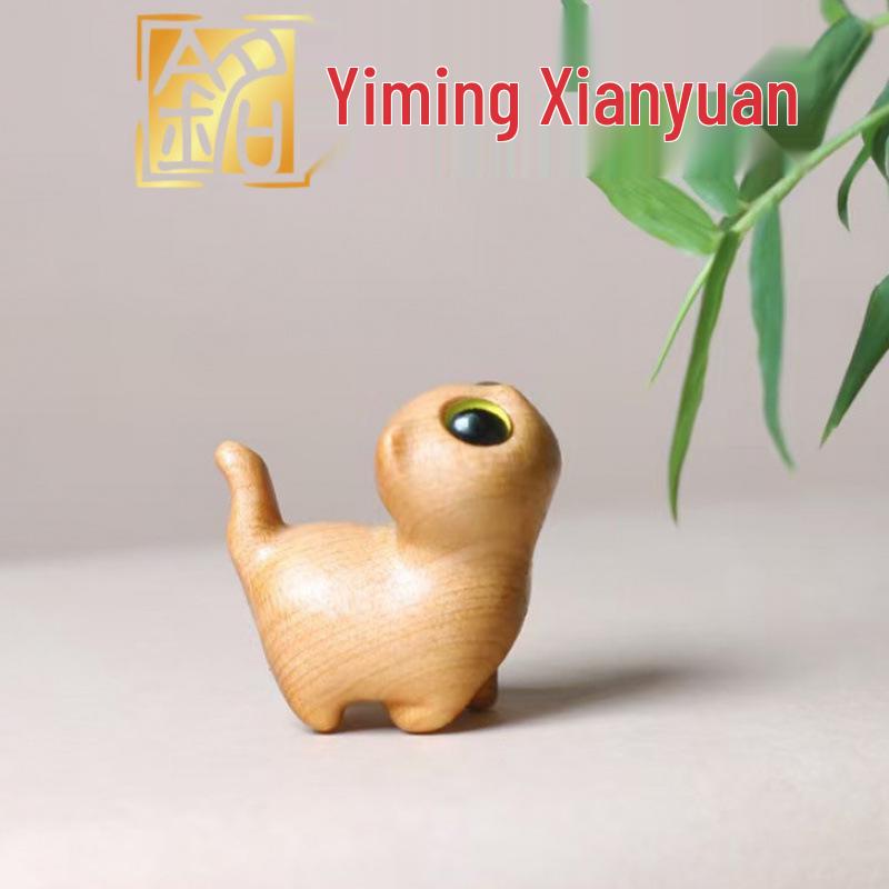 Yi Ming Cypress Wood Carved Cat Ornament Pocket-Sized Decoration