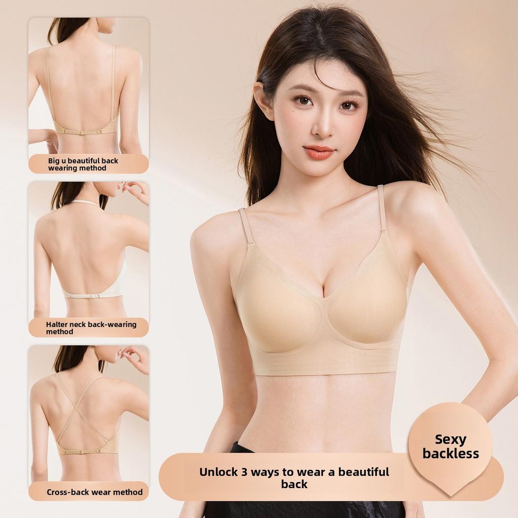 Female hang neck thin shoulder belt pull soft support to collect auxiliary breast invisible without trace beautiful back underwear