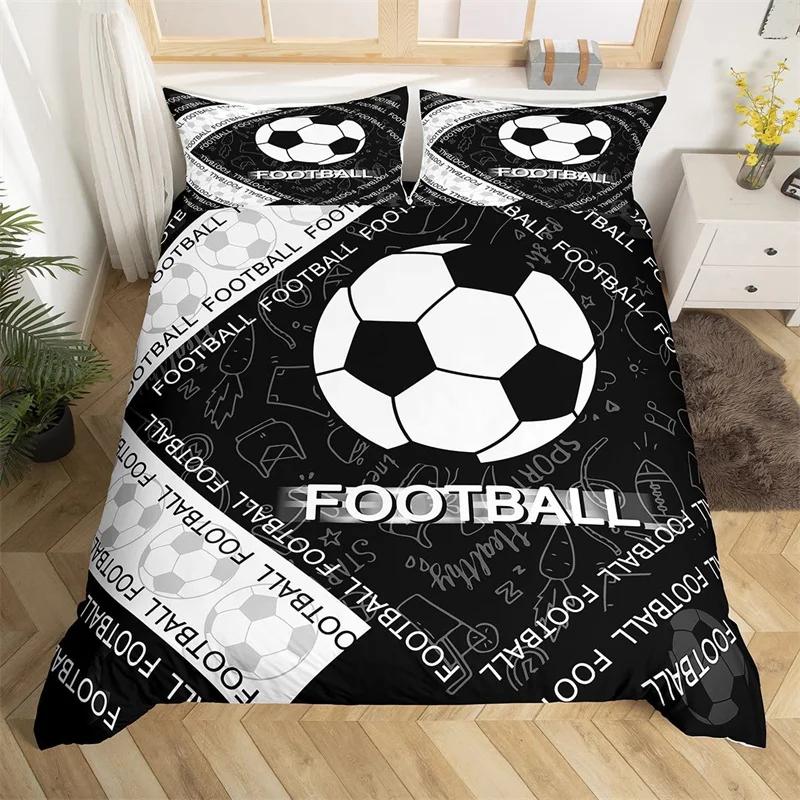 Comforter Soccer Sports Football Game Geometric Pattern Bedding Set For Kids Boys Girls Microfiber Ball Gaming