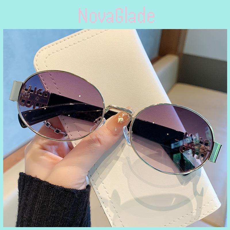 This oval metal sunglasses feature gray PC lenses with UV400 protection, delivering effective sun glare reduction. Crafted from durable metal frames, they measure approximately 5.5 inches wide, supporting prescription inserts. Suitable for outdoor activities like driving, fishing, or fashion outings, they combine minimalistic style with versatile fashion elements. Wipe clean with a soft cloth to maintain clarity.