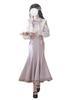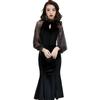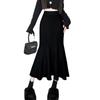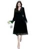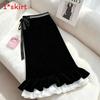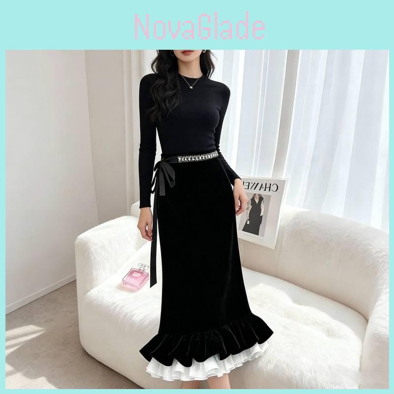 Cotton Blend Velvet Midi Skirt With Lace Trim For Elegant Ladies Spring Autumn Wear
