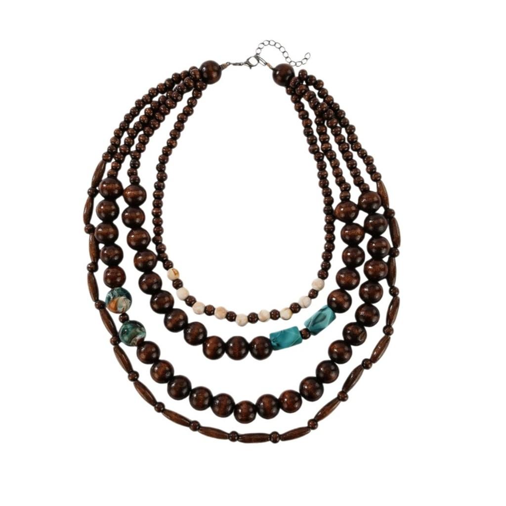 Melad Style Multilayer Wooden Beaded Necklace For Women And Men