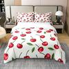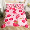 Comforter Pink Cherry Queen Size Cute Cartoon Fruit Comforter With Girl Kid Woman Breathable Bedding Set