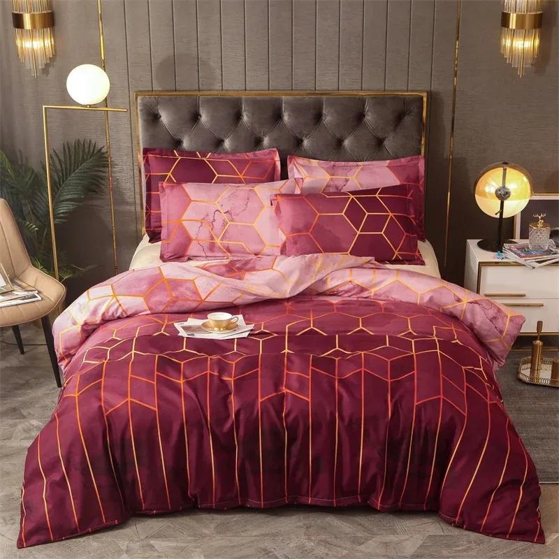 Comforter Wine Red Geometric Marble Pattern And 2 3-Piece Soft Fluffy Set With Zipluxury Bedding Set