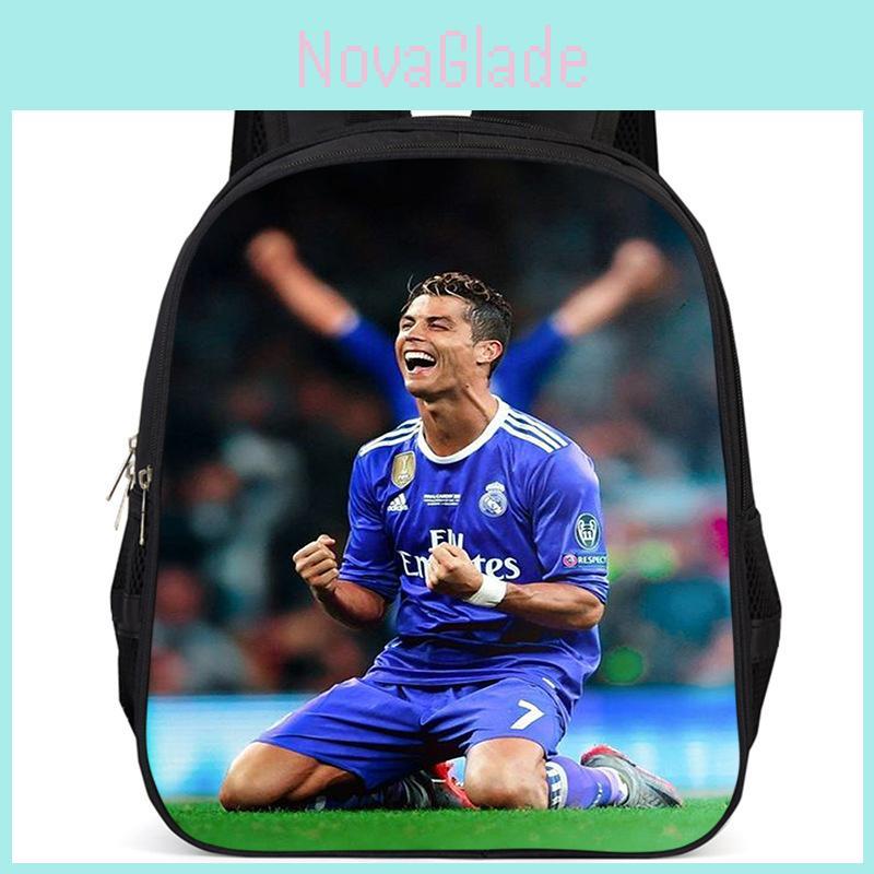 Spacious 15 Inch Cristiano Ronaldo School Backpack For Kids Lightweight Oxford Fabric