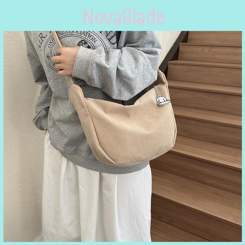 Chic Corduroy Shoulder Bag Casual Japanese Style Canvas Medium Crossbody