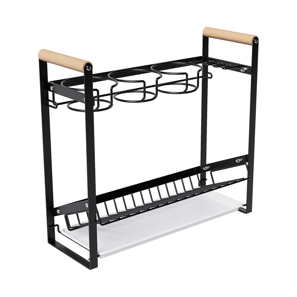 For Kitchen Countertop Tumbler Organizer Water Bottle Holder with Drainage Tray Drying Rack and Side Brush Storage
