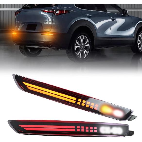 Smoked LED Rear Bumper Reflectors Fog Brake Tail Light Sequential Turn Signal Lamps Accessories Compatible with Mazda CX30 CX-30 2020 2021 2022 2023