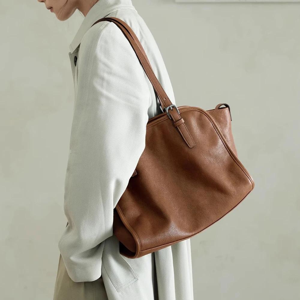 Ladies Retro Cowhide Tote Crossbody Bags Women's Natural Cow Leather Shoulder Bag Female Fashi Luxury Designer Handbags Girls