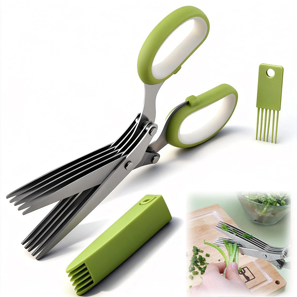 WAIRUIGOOD Kitchen Scissors Manual Shredder Hand Shredder Stainless Steel Blades with Safety Cover Cleaning Comb for Vegetable Herb Cutter 5-Blade
