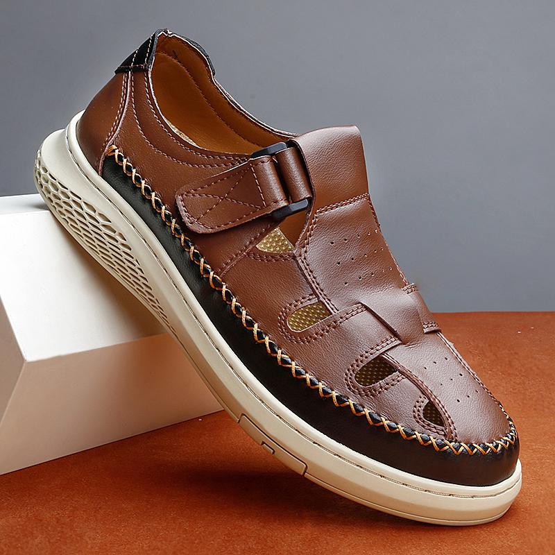 New Anti-collision Toe Men's Sandals Hot-selling Leather Beach Shoes Comfortable Roma Footwear Male Casual Summer Flats Sandaly