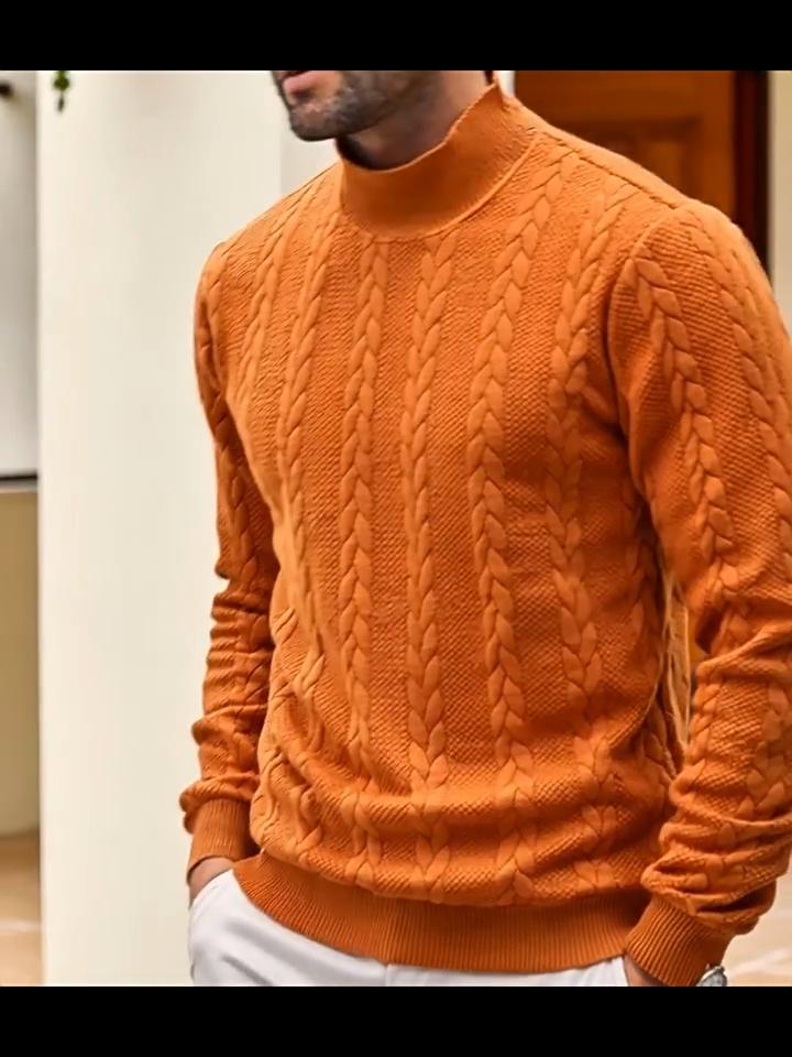 Men'S Sweater Turtleneck Warm Knitted Pullover Cable Knit Sweater Men'S Top Autumn and Winter Commuting Fashion Top Casual Dating Daily