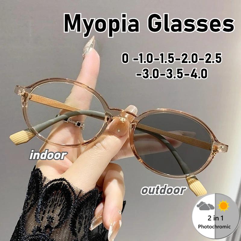 Unisex Latest Oval Shape Frame Photochromic Lens Myopic Eyeglasses Trendyable High Definition Anti-Blue Light Myopic Eyeglasses Diopter To -4.0