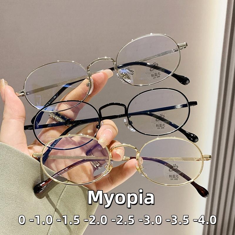 Fashionable and Elegant Oval Small Frame Myopic Eyeglasses Men Retro Metal Framed Anti Blue Ray Eyewear Ultra Light Unisex Design Eyeglasses